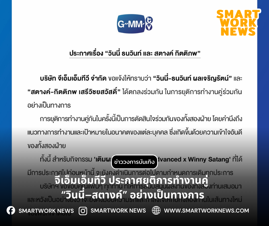 จีเอ็มเอ็มทีวี ประกาศยุติการทำงานคู่ “วินนี่–สตางค์” อย่างเป็นทางการ