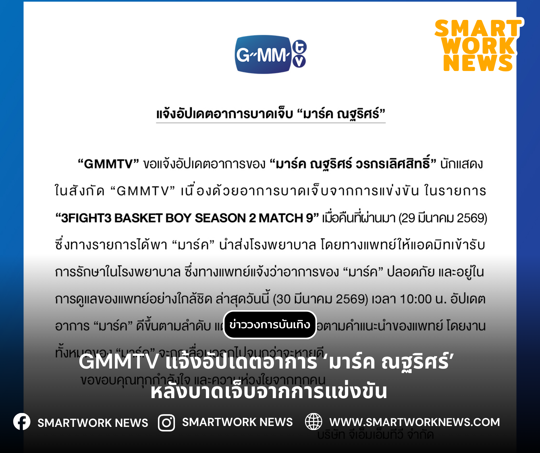 GMMTV แจ้งอัปเดตอาการ ‘มาร์ค ณฐริศร์’ หลังบาดเจ็บจากการแข่งขัน